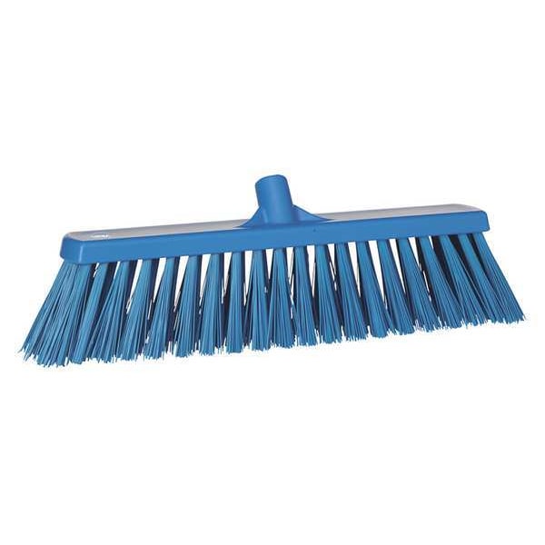 Broom Head, Bristle Material PET, For Surface Texture Multi-Surface, Sweep Face 19 in, Bristle Length 4 1/2 in, Bristle Color Blue, Block Material Polypropylene, Handle Color Blue, Handle Connection Type Threaded, Chemical Resistant Yes, Tool Type Broom Head, Block Depth 3 in, Block Width 20 1/2 in, FDA Compliant Yes, Acid Resistant Yes, Color Coding System Yes, Connection Thread Type European, Bristle Firmness Stiff, Block Color Blue