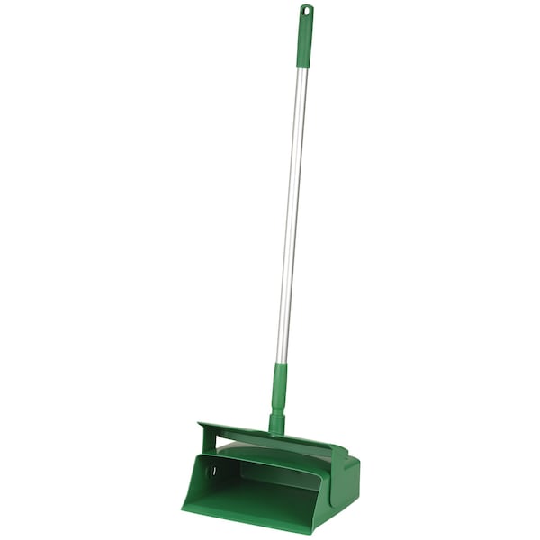 Dust Pan, Tool Type Dust Pan, Material Polypropylene, Handle Length 33 in, Overall Width 11 5/8 in, Overall Depth 9 in, Color Green, Features Locking Lid, Compact, Light-Weight, Handle Color Green, FDA Compliant Yes, Color Coding System Yes, Dust Pan Type Lobby, Includes Dust Pan Lid Yes