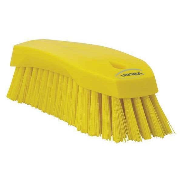 Scrub Brush, Bristle Firmness Stiff, Bristle Material Polyester, Handle Material Plastic, Brush Length 7 1/2 in, Handle Length 7 1/2 in, Head Width 2 1/2 in, Bristle Color Yellow, Overall Length 8 in, Chemical Resistant Yes, Bristle Length 1 1/2 in, Brush Type Hand Scrub Brush, Handle Color Yellow, Head Shape Angled, Temperature Resistant Yes, FDA Compliant Yes, Acid Resistant Yes, Color Coding System Yes