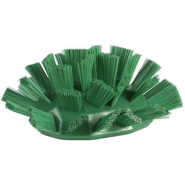 Tank Brush Head, Tool Type Scrub Brush Head, Bristle Material Polyester, Brush Length 7 1/2 in, Bristle Firmness Stiff, Bristle Color Green, Sweep Face 6 3/4 in, Chemical Resistant Yes, Temperature Resistant Yes, FDA Compliant Yes, Acid Resistant Yes, Color Coding System Yes, Bristle Length 1 1/2 in, Connection Thread Type European, Handle Connection Type Threaded