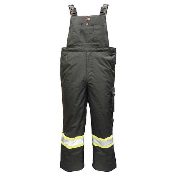 Flame-Resistant Insulated Bib Pants, Insulated for Cold Conditions Yes, Material Polyester, Fabric Weight 300 den, Number of Outside Pockets 4, Includes Suspenders Yes, Color Black, Maximum Waist Size 39 in, Inseam 32 1/2 in, Size XL