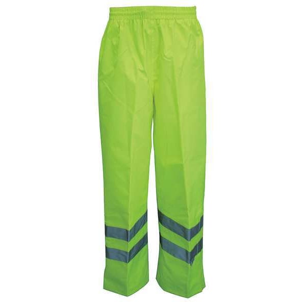Hi-Visibility Rain Bib Pants, Material 300D Trilobal Rip-Stop Polyester, Polyurethane, Gender Men's, Size M, Color Gree/Yellow, Inseam 31 1/2 in, Maximum Waist Size 33 in, High-Visibility Yes, ANSI Class E, Number of Outside Pockets 0, Includes Lining Yes, Lining Material Polyester, Ankle Type Hook-and-Loop, Fabric Weight 3.75 oz, Style Rain Pants, Fly Closure Type Hook-and-Loop, Waist Closure Drawstring, Reflective Stripe Border Type None