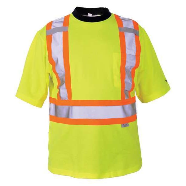 High Visibility Short Sleeve Shirt, Gender Unisex, ANSI Class 2, Shirt Style T-Shirt, Material Polyester/Cotton, Number of Outside Pockets 1, Color Green, Size M, Standards ANSI/ISEA 107-2015 Type R, Class 2, CSA Z96-15 Class 2, Level 2, Sleeve Type Short, Maximum Chest Size 101 1/2 in, ANSI Type R