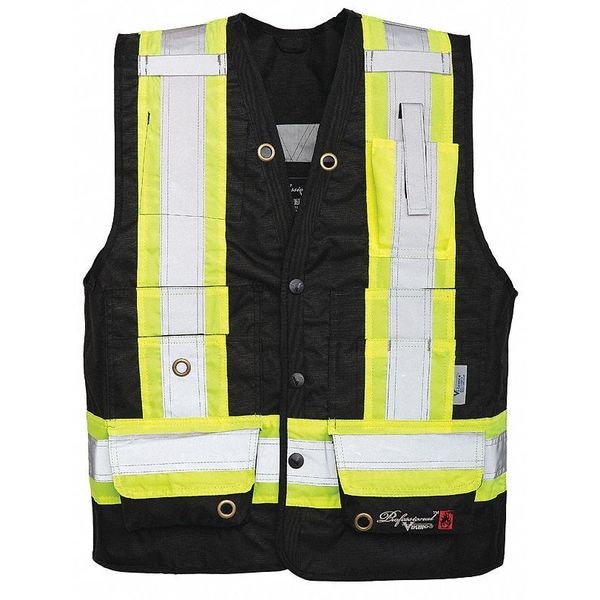 Flame-Resistant Surveyor Vest, ANSI Class 1, Vest Size M, Fits Chest Size 40 in to 101-1/2 in, Number of Pockets with Closure 4, Features ID Window, Mesh Side Vents for Breathability, Safety D-ring Slot Access, Standards ANSI/ISEA 107, ASTM D6413, ASTM D6413 (FR), CAN/CGSB-4.2 No.27.10, CSA Z96-15, WCB/Work safe/DOT configuration