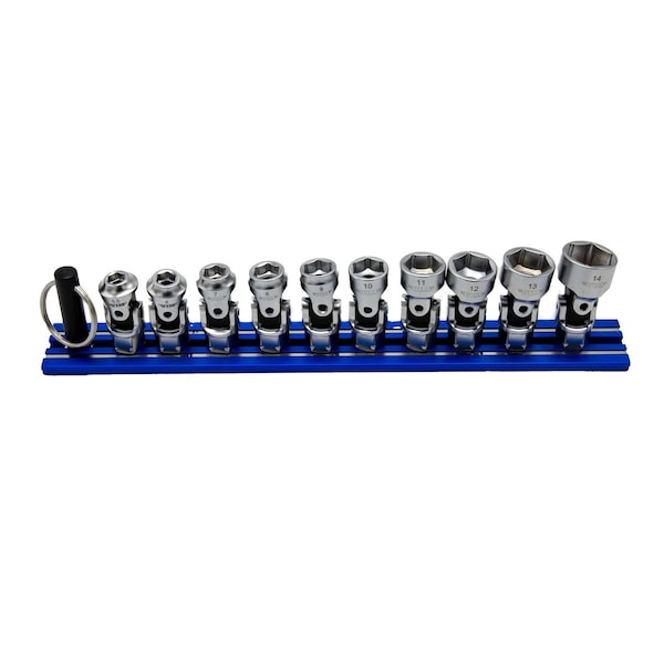 10 Piece 6 Point Dual Drive Stubby Uj Metric Socket Set - 1/4 Inch X 11 Mm Drive - Blue Magrail