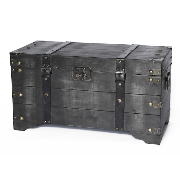 Distressed Black Medium Wooden Storage Trunk