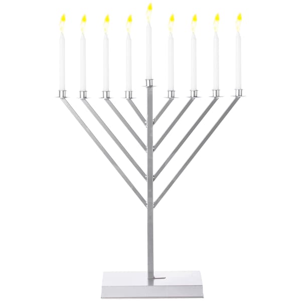 Let the light of Hanukkah illuminate your home with this splendid unique Hanukkah menorah, This unique menorah is Composed out of durable metal material. It features the classic chabad shape of the straight diagonal branches connected to the stem. will make a great addition to your Hanukkah celebrations.