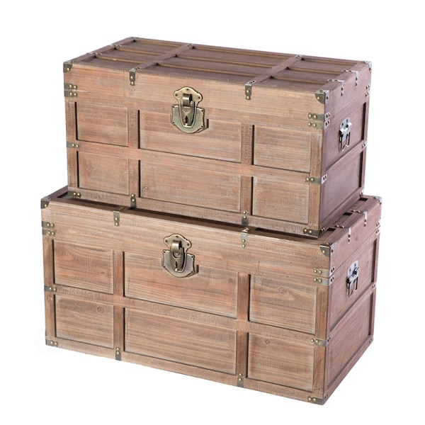 Wooden Rectangular Lined Rustic Storage Trunk with Latch, PK 2