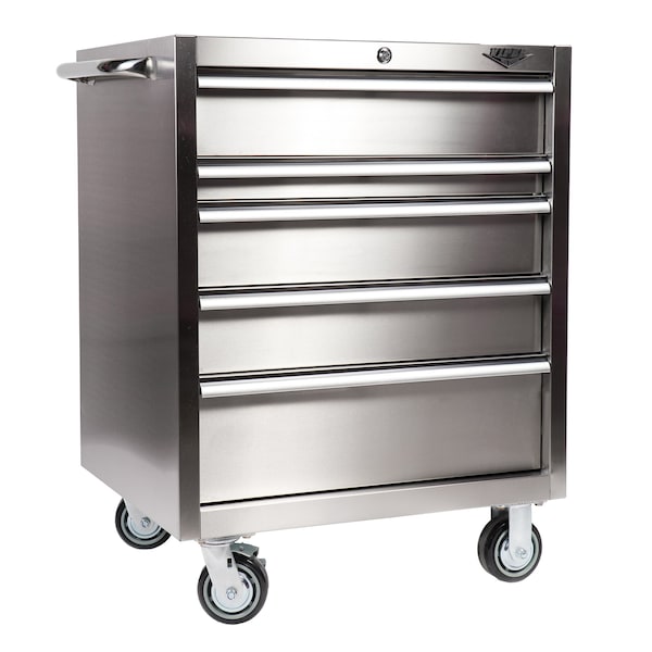 30-Inch 5-Drawer Rolling Tool Cabinet, 304 Stainless Steel