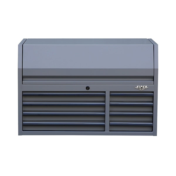 This 41-Inch 8-Drawer Top Chest by Viper Tool Storage is built to last with a reinforced 19-gauge steel frame and a powder-coated finish resistant to wear and tear. Offering ample storage at 24 inches deep, this chest features drawers with full-extension ball bearing drawer slides that support up to 100 lbs plus ReSecure safety latches. For added utility, the till includes a power strip with 2 USB-A ports and four 3-prong outlets, as well as built-in peg holes for extra organization options. Viper SlideLock Technology ensures added security. This top chest measures 40-7/8 W x 24-1/4 D x 26-5/8 H 46 opened.