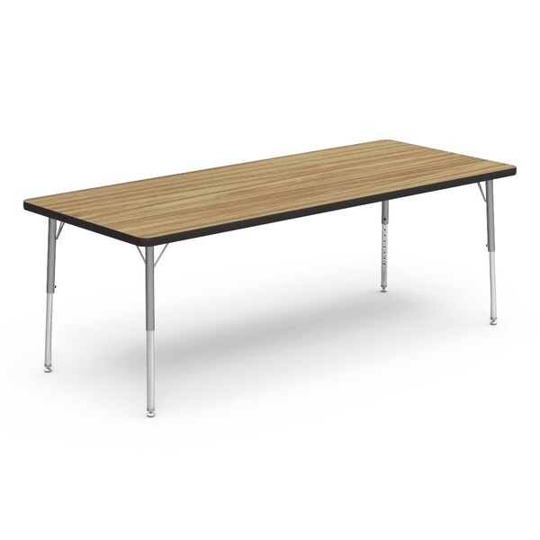 30 in. W, 72 in. L, 17-25 in. H, Medium Oak Top / Black Edge