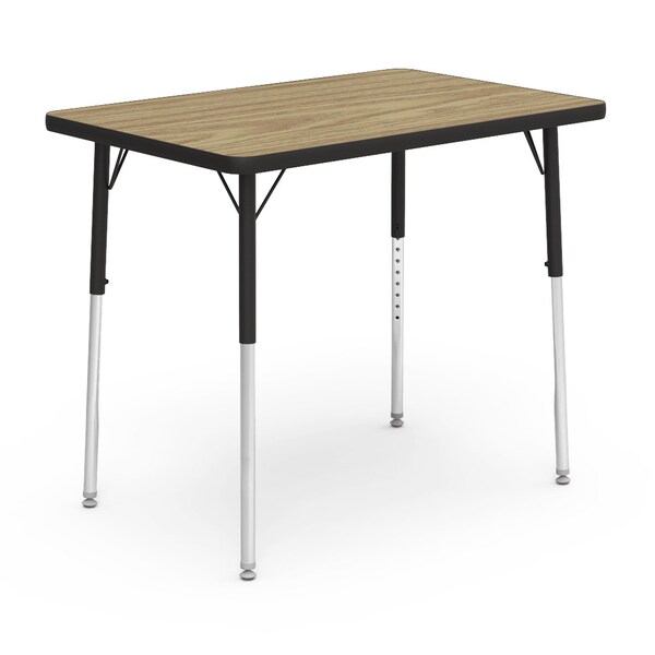 36 in. W, 24 in. L, 22-30 in. H, Medium Oak Top / Black Edge