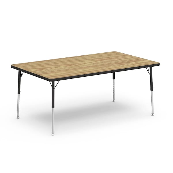 36 in. W, 60 in. L, 17-25 in. H, Medium Oak Top / Black Edge