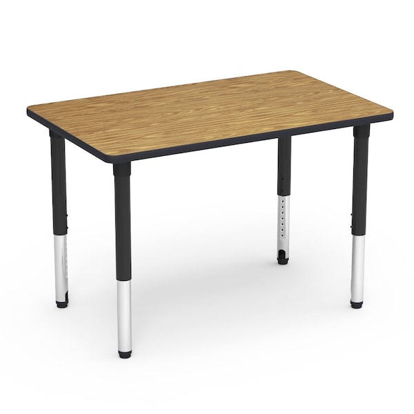 48 in. W, 30 in. L, 24-32 in. H, Medium Oak Top / Black Edge