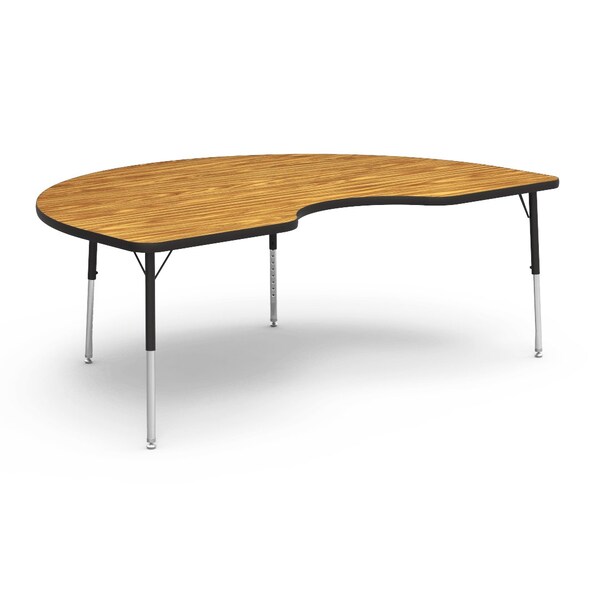 48 in. W, 72 in. L, 17-25 in. H, Medium Oak Top / Black Edge