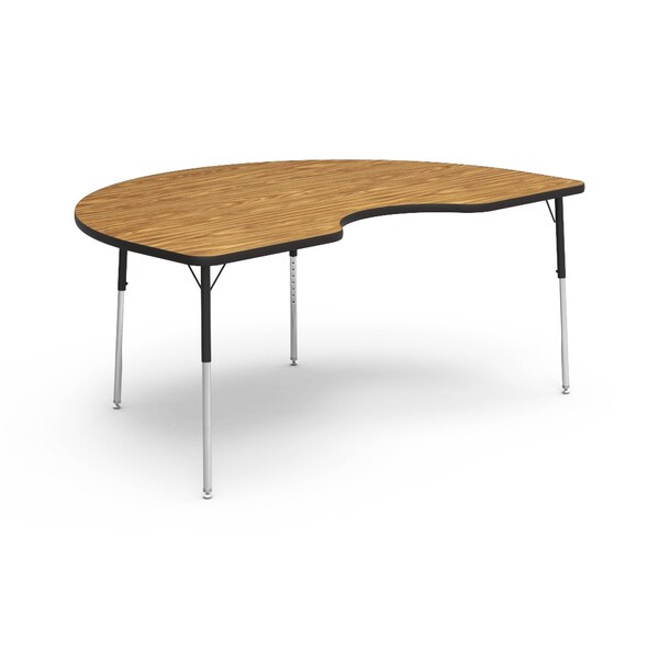 48 in. W, 72 in. L, 22-30 in. H, Medium Oak Top / Black Edge