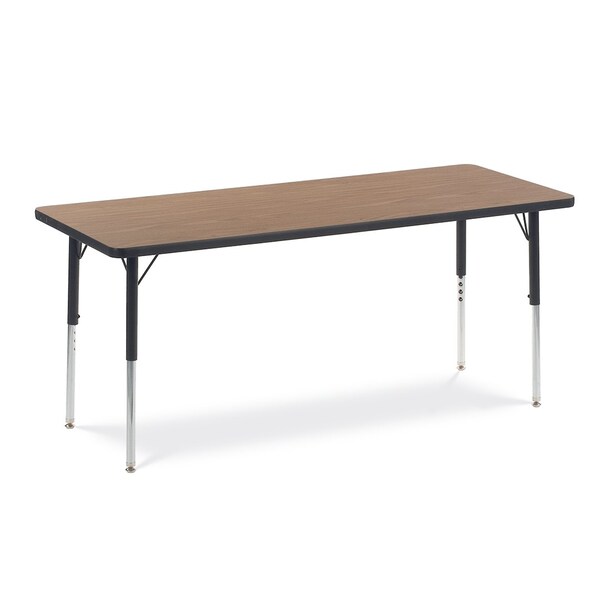 60 in. W, 24 in. L, 22-30 in. H, Medium Oak Top / Black Edge