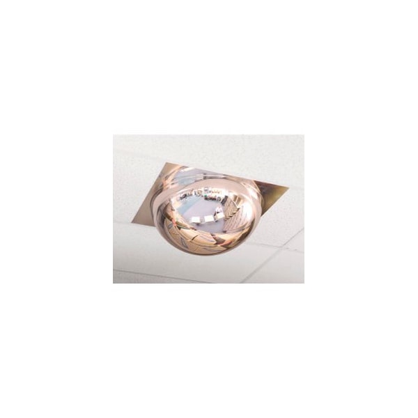 WIDE-ANGLE DOME MIRROR PROVIDES UNOBSTRUCTED VIEW OF BLIND AREAS. HELPS PREVENT COSTLY ACCIDENTS. ASSURES SAFETY AND SECURITY. IDEAL FOR HALLWAYS, CORNERS, ELEVATORS. BRIGHT PANORAMIC IMAGE AIDS PERSONNEL SUPERVISION, MACHINE MONITORING, PRODUCTION AND TRAFFIC CONTROL. LIGHTWEIGHT, UNBREAKABLE 1/8'' THICK ACRYLIC. DROP-IN SUSPENDED CEILING STYLES ARE DESIGNED TO PROVIDE A FLUSH CLEAN APPEARANCE BY SIMPLY REPLACING A CEILING TILE.