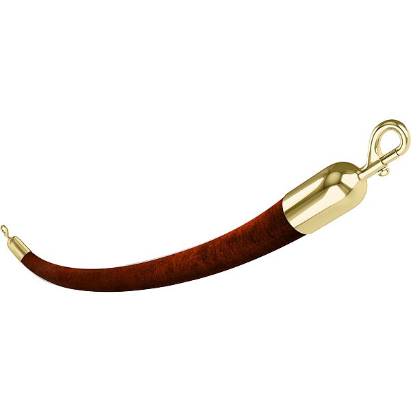 Barrier Rope, Rope Color Maroon, Overall Length 6 ft, Rope Diameter 1 1/2 in, Rope Material Velour, End Cap Style Snap End, Indoor/Outdoor Usage Indoor, Outdoor, End Cap Material Brass, End Cap Finish Polished Brass
