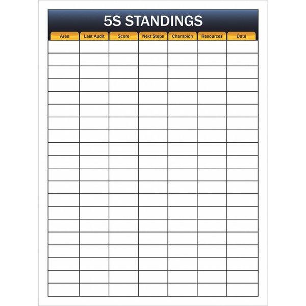 5S Audit Findings Board, Plastic, 48 in, 36 in, No Frame Frame, White, Gloss