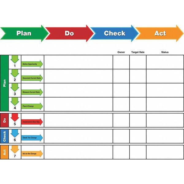 Lean Tracking Board, Plastic, 36 in, 48 in, No Frame Frame, White, Gloss