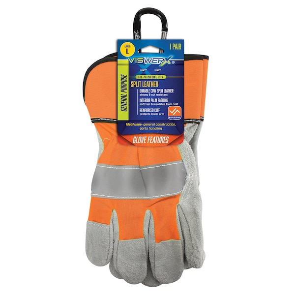 Hi-Vis Split Leather Palm Glove Orange LG