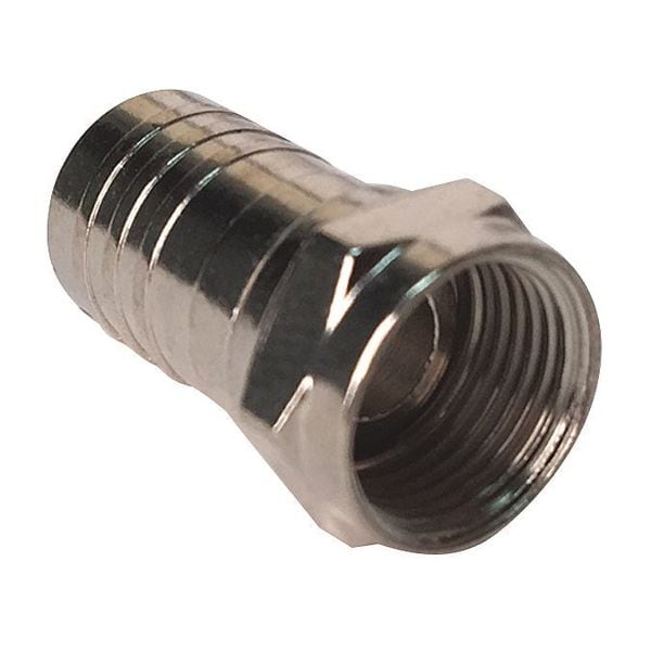Crimp Connector, Gender Female, Product Type Connector, Color Silver, Installation Method Crimp-On, Compatible Coaxial Cable Type RG-6, Maximum Frequency 1 GHz, Maximum Impedance 75 ohm, Connector Type F-Type, Finish Chrome Plated, Manufacturers Warranty Length 3 yr, Package Quantity 10