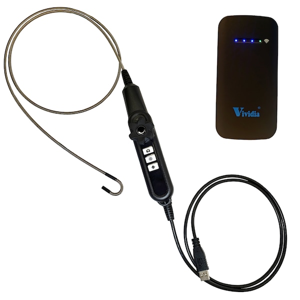Vividia D3145 USB Digital One-Way Articulating Borescope has 4.5mm diameter camera probe and 1 meter long insertion tube. D3145 can only be bended in one direction, and the maximum bending angle is ~180 degree. The insertion tube has metal braided outside layers and the bending part is also made with stainless steel, which offers good abrasion resistance. With USB connection, one can connect Vividia D3145 Digital Borescope to a Windows PC (WIndows XP, 7, 8 and 10), MacBook, android devices. With additional Vividia VA-B2 AirBox wireless converter and "AirBox-Vividia Ablescope", D3145 can be used with iPhone and iPad. End users can easily take pictures and videos with free software. The LED brightness can be adjusted. Vividia D3145 Articulating Borescope are an ideal tool for automotive, airplane, aviation, manufacturing, and instrument inspections.