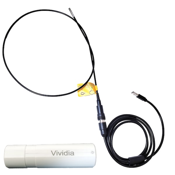 Vividia GB-5100 USB Digital Semi-Rigid Gun Barrel Borescope is specially designed to inspect rifle gun barrels with its small diameter (5 mm, 0.21"), long insertion tube length (36", or 91 cm) and near focus range. Vividia GB-5100 USB Digital Semi-Rigid Gun Barrel Borescope also features a moveable side-viewing mirror to adjust focus range when viewing gun barrel wall. With USB connection, Vividia GB-5100 Borescope can be used with Windows PC, Mac, Android phones and iPhone/iPad (with extra wireless converter like Vividia VA-B2 AirBox) to do preview, take pictures and videos. One can use software to do measurement if needed. Side mirror (5.0mm, 0.21" diameter) can be used to inspect wall of barrel in details. The 5mm (0.21") diameter camera probe can fit .22 caliber and large gun barrels. Vividia GB-5100-W WiFi Digital Borescope Bundle of GB-5100 gun borescope and VA-B2 WiFi Wireless Converter AirBox to be used with iPhone iPad.