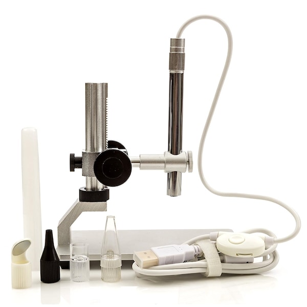 Vividia PM-120 USB Digital Microscope Borescope with 12mm Diameter and 300x Magnification is a basic manual focus USB microscope. It can be connected to a PC, MacBook, most Android phones or tablet through USB connection. Multi-purpose digital video endoscope, microscope, borescope with improved professional sturdy multi-functional metal stand.