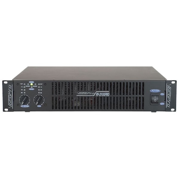 Our flagship amplifier, the VP-2100 PRO packs a serious punch without a heavy hit to your wallet. It features the latest Digital Switching Technology for low-weight and reduced heat, making for a very portable and reliable amp. A very low 100-dB s/n ratio insures a crystal clear and uncolored audio signal and a true and faithful vocal reproduction. With its built-in Clip Limiter and Low Frequency Filter, distortion and speaker damage is a thing of the past. Also, when it comes to I/O versatility, the Balanced 1/4-in, XLR, and 3-way binding posts make for easy system integration's. So when you seek chest thumping, crystal clear sound with industry leading features and total reliability, the VP-2100 PRO has you covered! * 1000W + 1000W RMS at 2 Ohms* 2000W + 2000W max power output at 2ohm* Frequency Response: 20 Hz - 20 kHz* Signal to Noise Ratio: 100 dB* XLR and 1 / 4-in Inputs* Stable at 2 ohm so it can drive eight 8 ohm speakers* Digital Switching Design is lighter than conventional amps* Shipping Dimensions 22-in W x 22 1/2-in D x 8-in H* Shipping Weight: 30 Lbs.. VP-2100