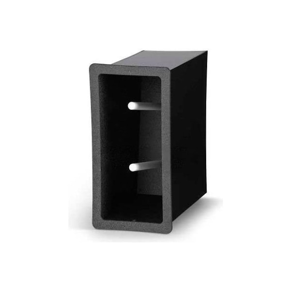 Acry fab, flush mount vertical dome lid dispenser, fmdl-2v, 2 stack, black, 13-3/8" x 6-3/4" x 12" features: mar and fingerprint resistant surface for low maintenance constructed with virtually indestructible thermoplastic accommodates all standard size dome lids standard color is black.