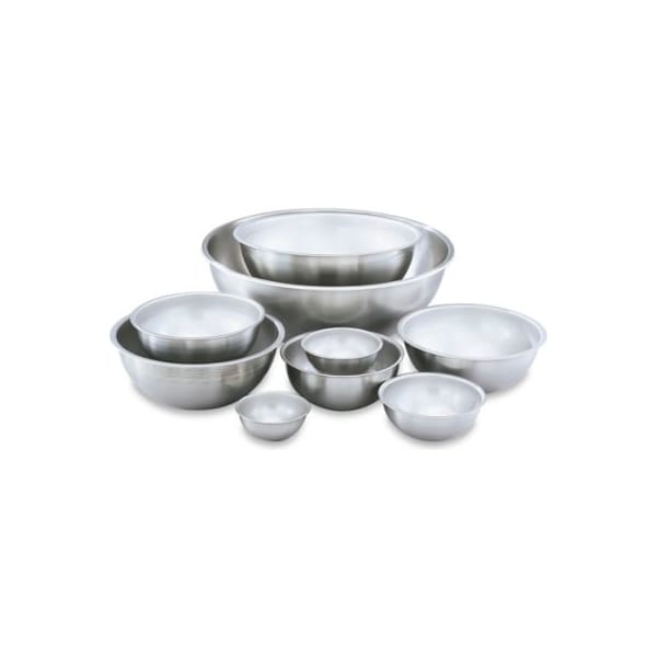 Mixing bowl 45 qt. - nsf heavy-gauge 300 series stainless steel. Precise capacities. Concave bottoms sit flat on countertop. Satin finish interior. Stain and scratch resistant. Proper weighting prevents tipping when in use. Stainless steel finish. 45 quart capacity.