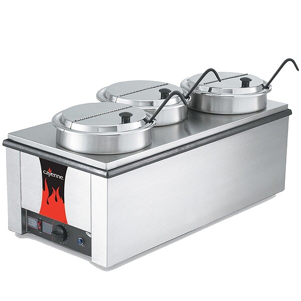 Food Rethermalizer, Capacity 21.8 qt, Overall Height 9 3/4 in, Overall Width 13 3/4 in, Overall Depth 28 3/4 in, Maximum Operating Temperature 212 Degrees F, Minimum Operating Temperature 104 Degrees F, Voltage 120V AC, Wattage 1,600 W, Current 13.3 A, Material Stainless Steel, Color Black, Cord Length 72 in, Includes (3) Heavy-Duty 4 oz Black Kool-Touch(R) Ladles (4980420), (3) Hinged Inset Covers (47488), (3) Insets (78184), Adapter Plate (19188)