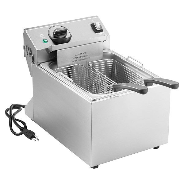 Fryer, Capacity 10 lb, Number of Fry Pots 1, Overall Height 12 5/8 in, Overall Width 10 3/4 in, Overall Depth 17 1/8 in, Material Stainless Steel, Heating Capacity Not Applicable, Maximum Operating Temperature 375 Degrees F, Voltage 120V AC, Tank Capacity Not Applicable, Includes (2) Wire Baskets, Plug Type 5-15P, Power Source Electric, Wattage 1,800 W