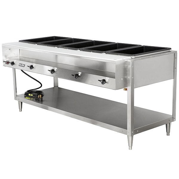 Food Table, Wattage 3500 W, Product Type Hot Food Counter, Color Silver, Current 29.2 A, Food Station Type Hot Food, Holding Capacity 4 in Deep Pans, Material Stainless Steel, Number of Compartments/Wells 5, Overall Height 34 in, Phase Single, NSF Certified Yes, Overall Depth 81 5/16 in, Overall Length 32 in, Voltage 120V AC