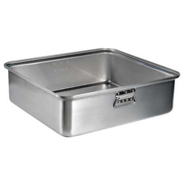 Roasting Pan with Drop Handles, Material Aluminum, NSF Certified Yes, Oven Safe Yes, Product Type Roasting Pan with Drop Handles, Dishwasher Safe No, Freezer Safe No, Perforation Solid, Capacity 42.5 qt, Color Silver, Overall Length 22 1/8 in, Overall Width 20 1/8 in, Overall Depth 6 9/16 in, Gauge 10 ga, Bead Closure Closed Bead, Overall Diameter Not Applicable, Coating Uncoated
