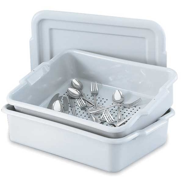 Silverware Soak System, Product Type Silverware Soak System, Overall Height 8 in, Compatible Container Manufacturer Part Number Not Applicable, Lid Included Yes, Lid Length 21 1/8 in, Lid Width 15 3/4 in, Perforated/Solid Lid Solid, Material Plastic, Color Silver, NSF Certified No, Overall Length 20 in, Overall Width 15 in