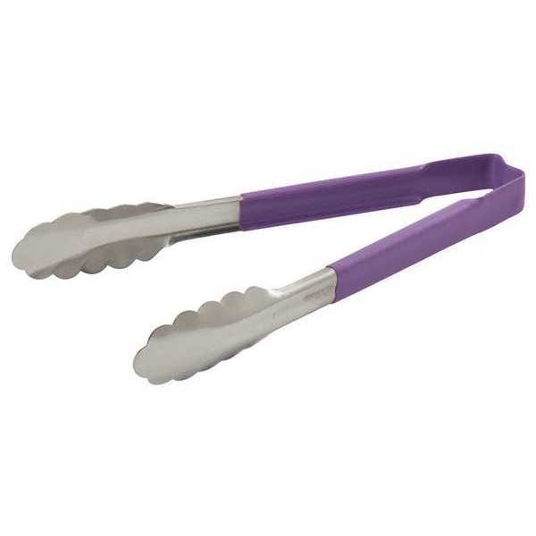 Uncoated Scalloped Tongs, Gauge 20 ga, Coated Handle Yes, Handle Color Purple, Design 1 Piece, Dishwasher Safe No, Product Type Uncoated Scalloped Tongs, Locking No, Maximum Temperature 180 Degrees F, Overall Length 9 1/2 in, Overall Width 6 1/2 in, NSF Certified Yes, Color Purple, Blade Material Stainless Steel