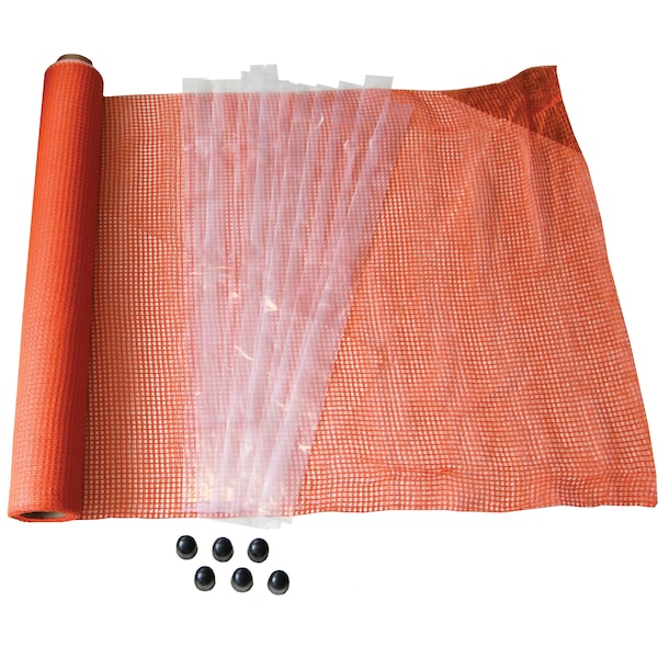 4FT x 50FT Orange EZ Pocket Net Fence. Includes 4FT x 50FT Mesh with Pocket Net Technology, 6 poly sleeves and protective caps. Great temporary fence for residential, construction, comercial or municipalities- EZ to install in three EZ steps.