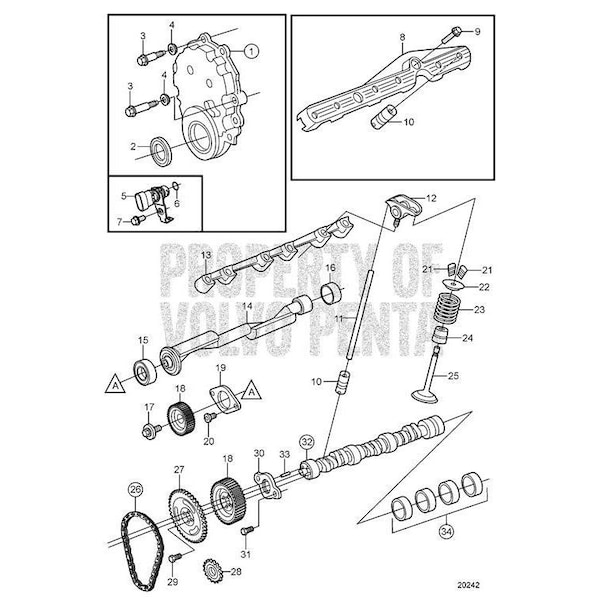 Volvo Penta Exploded view schematic Camshaft and Valve Train