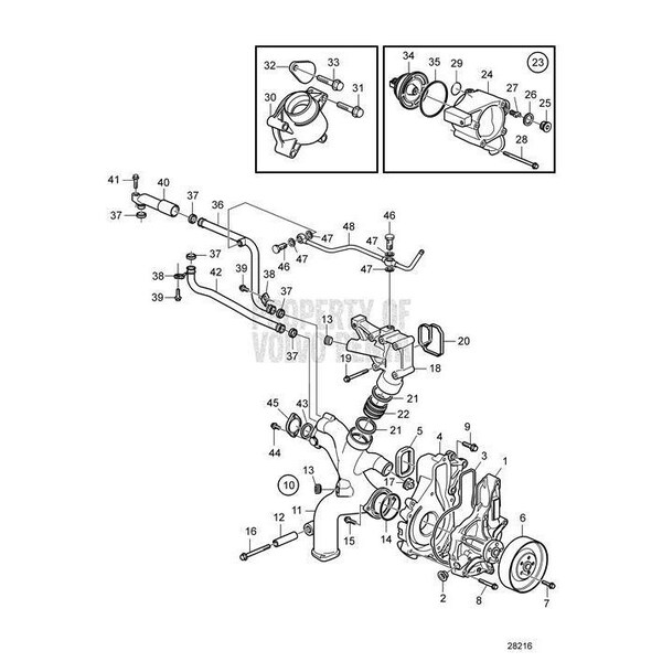 Volvo Penta Exploded view schematic Cooling Water Pump and Thermostat Housing SN2013461900 This product replaces 21519562