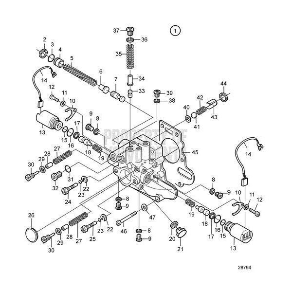 Volvo Penta Exploded view schematic Shifting Valve Electrical, Components