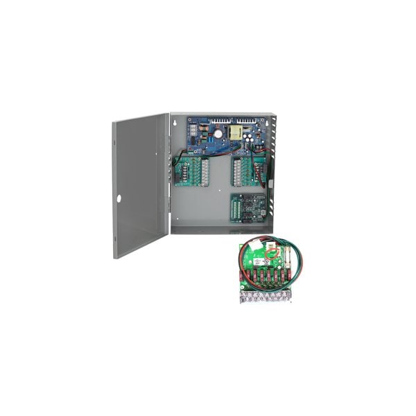 6 Amp Power Supply, Fused 8 Zone Option Board, 12/24VDC Field Selectable, Space for Battery Back-Up.