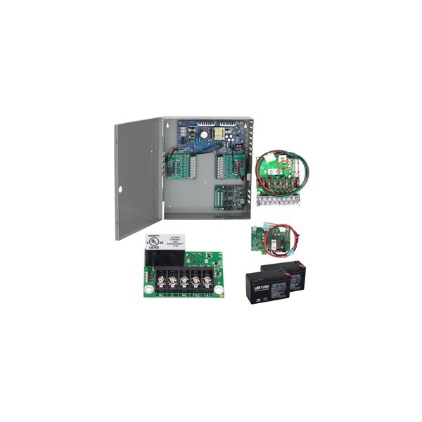 6 Amp Power Supply, Fused 8 Zone Option Board, Plug-in Fire Alarm Relay, Battery Backup Kit, with 2 Each 7 Amp Hour Batteries, 12/24VDC Field Selectable