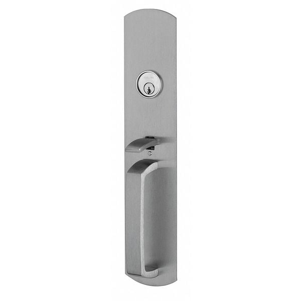 Thumbpiece Pull, Mechanical Exit Device Trim, Door Handing Non-Handed, 88 Series, Satin Chrome Finish, Max. Door Height 84 in, For Door Thickness 1-3/4 in to 2-1/4 in, Application Heavy Traffic, Overall Width 3 in, Grade 1, Standards ANSI, ADA Compliant No, Features ANSI Function 03, Key Retracts Latchbolt