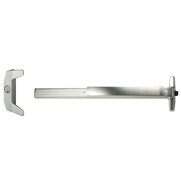 Grade 1 Rim Exit Device, Narrow Stile Pushpad, 36, Night Latch, Escutcheon Pull, Hex Key Dogging, Satin Chrome Finish, Left-Hand Reverse