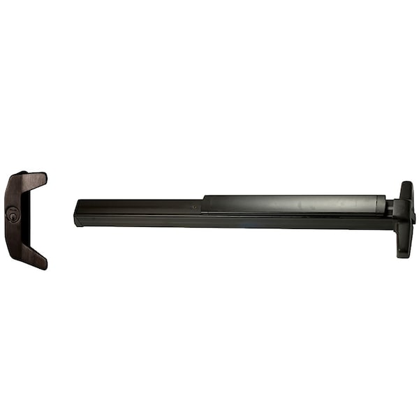 Grade 1 Rim Exit Device, Narrow Stile Pushpad, 36, Night Latch, Escutcheon Pull, Hex Key Dogging, Dark Bronze Anodized Aluminum Finish, Left-Hand Reverse