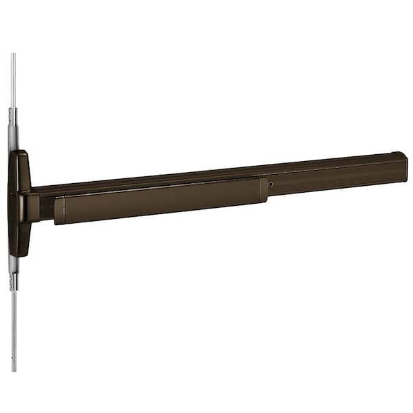 Grade 1 Concealed Vertical Rod Exit Device, Narrow Stile Pushpad, Exit Only, Less Trim, 48, Hex Key Dogging, Dark Bronze Anodized Aluminum Finish, Non-Handed