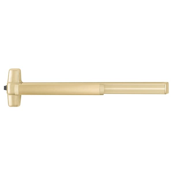 Grade 1 Rim Exit Bar, Wide Stile Pushpad, 36-in Device, Exit Only, Less Trim, Request to Exit Switch, Less Dogging, Satin Brass Finish, Non-handed
